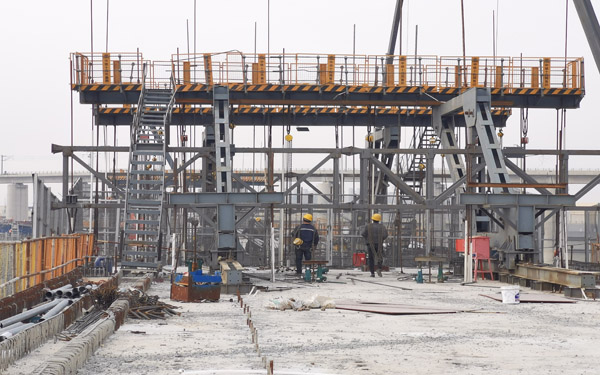 (3)檢查墩身預埋件和斜拉鋼帶的位置及堅固程度,是否符合設(shè)計要求。