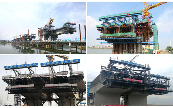(2)在墩上進行零號塊施工并以斜拉托架做施工平臺時,在平臺邊緣處,應設(shè)安全防護設(shè)施。